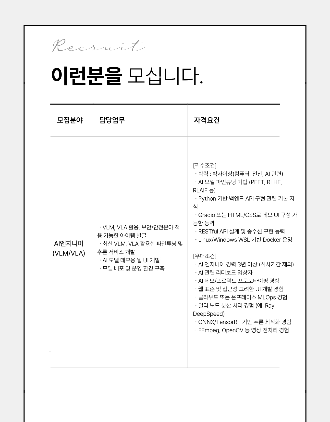 공고문 URL: ㈜에스원 채용 - AI엔지니어(VLM/VLA) | 잡코리아