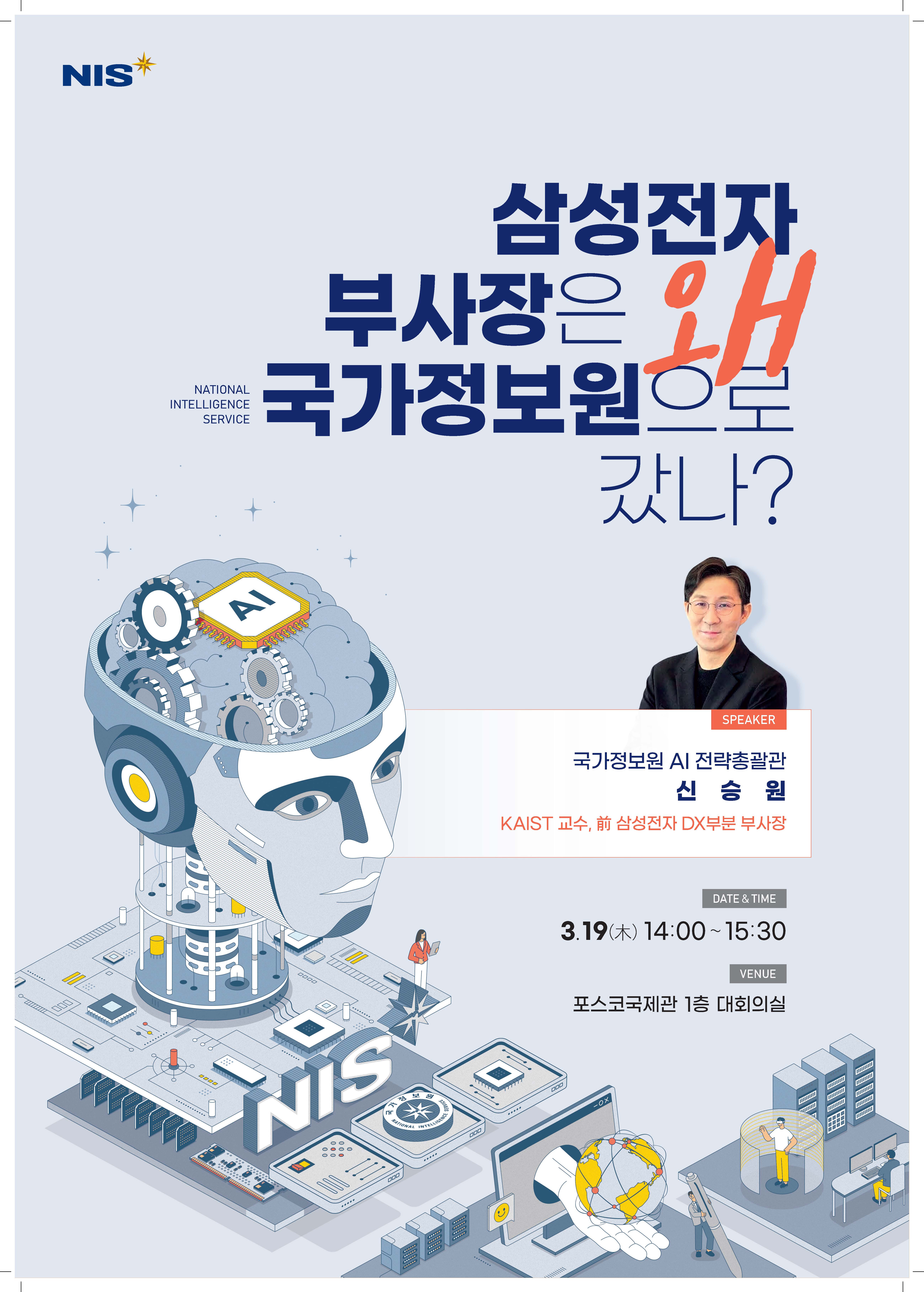 - 연사: 신승원 KAIST 교수(국가정보원 AI 전략총괄관, 前 삼성전자 DX부분 부사장)