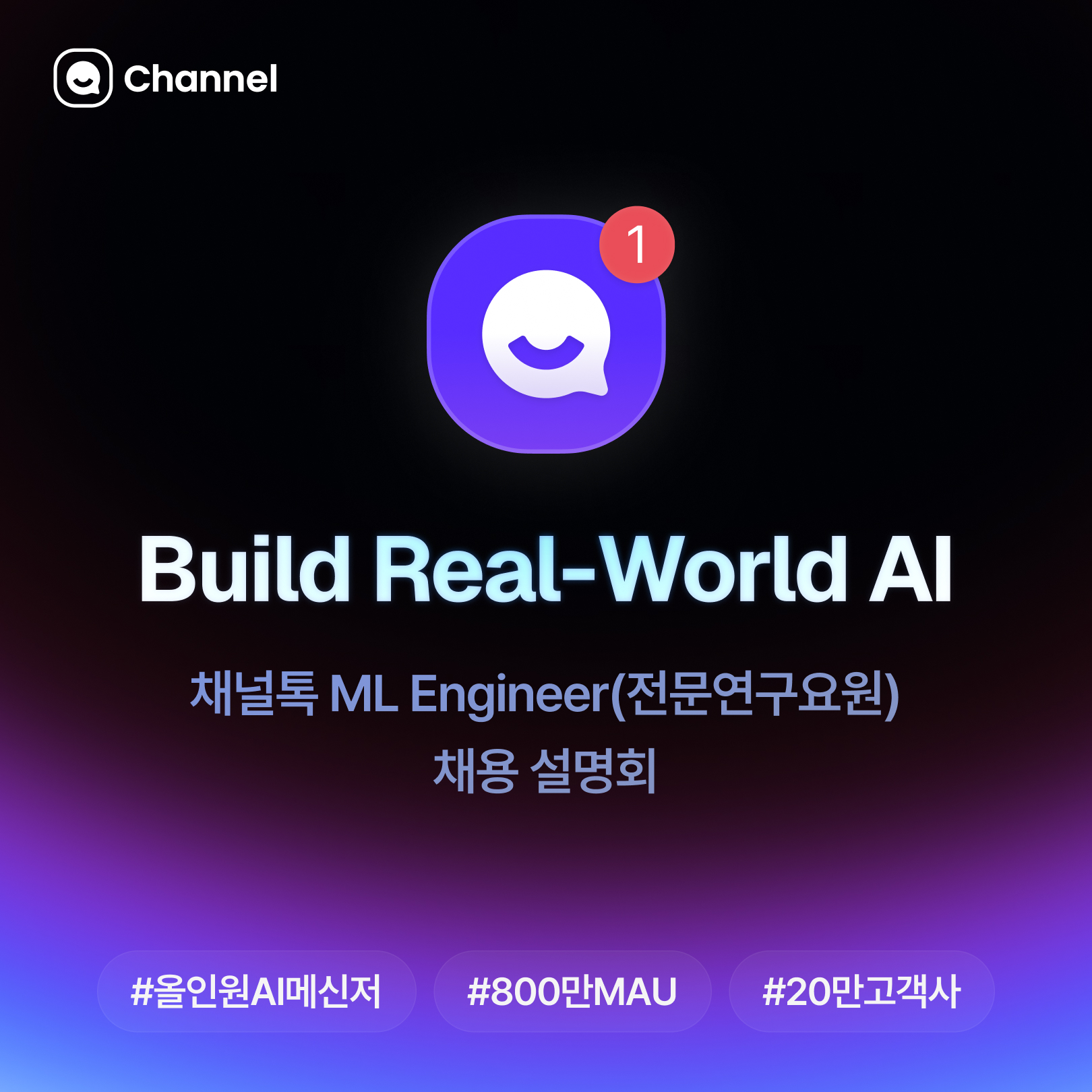 | [채널톡] ML Engineer 채용 설명회(전문연구요원 포함, 비전문연도 참여 가능) | ||