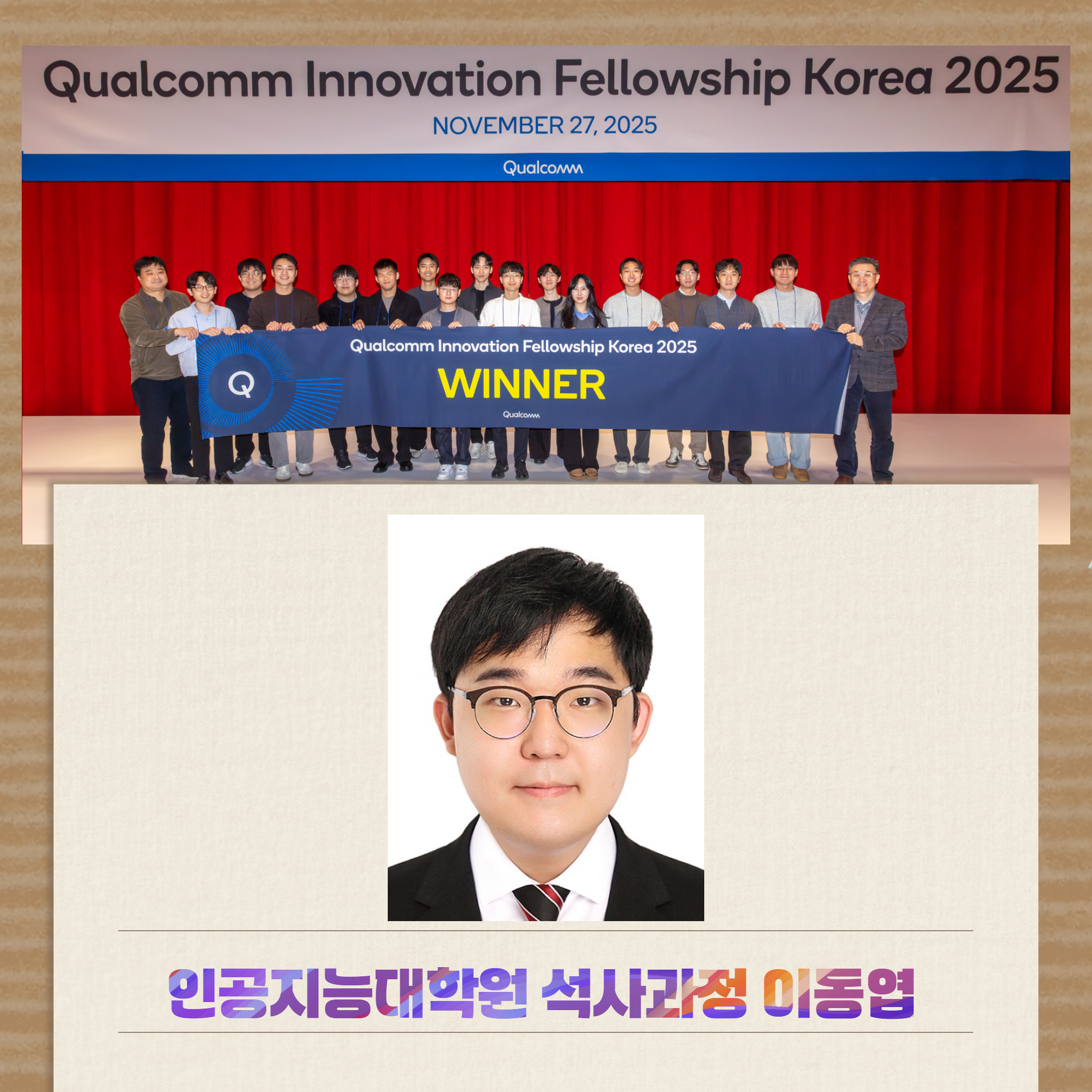 | 인공지능대학원 석사과정 이동엽, ‘퀄컴 이노베이션 펠로우십 코리아 2025’ Winner 선정 | ||