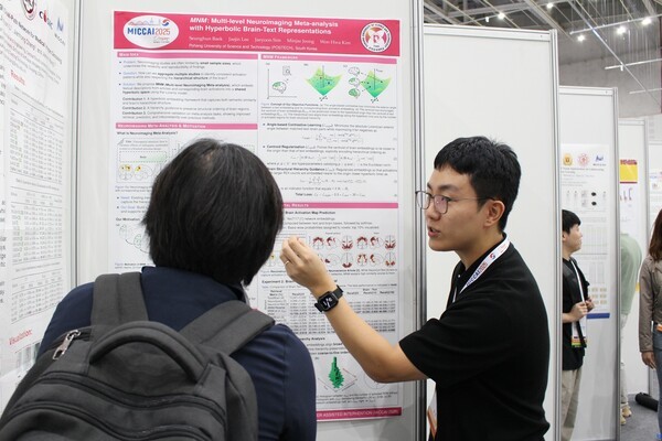 특히 최다 참가국인 대한민국의 활동 속에서 포항공과대학교 김원화 교수 연구실은 한국과학기술원(KAIST, 총장 이광형)의 개막 전 환영행사부터 MICCAI 2025의 마지막 날까지 홍보위원장(Communication Chair) 및 지역위원회(Local Committee) 담당자 역할과 함께 연구성과 소개까지 다양한 활동을 펼쳤다.