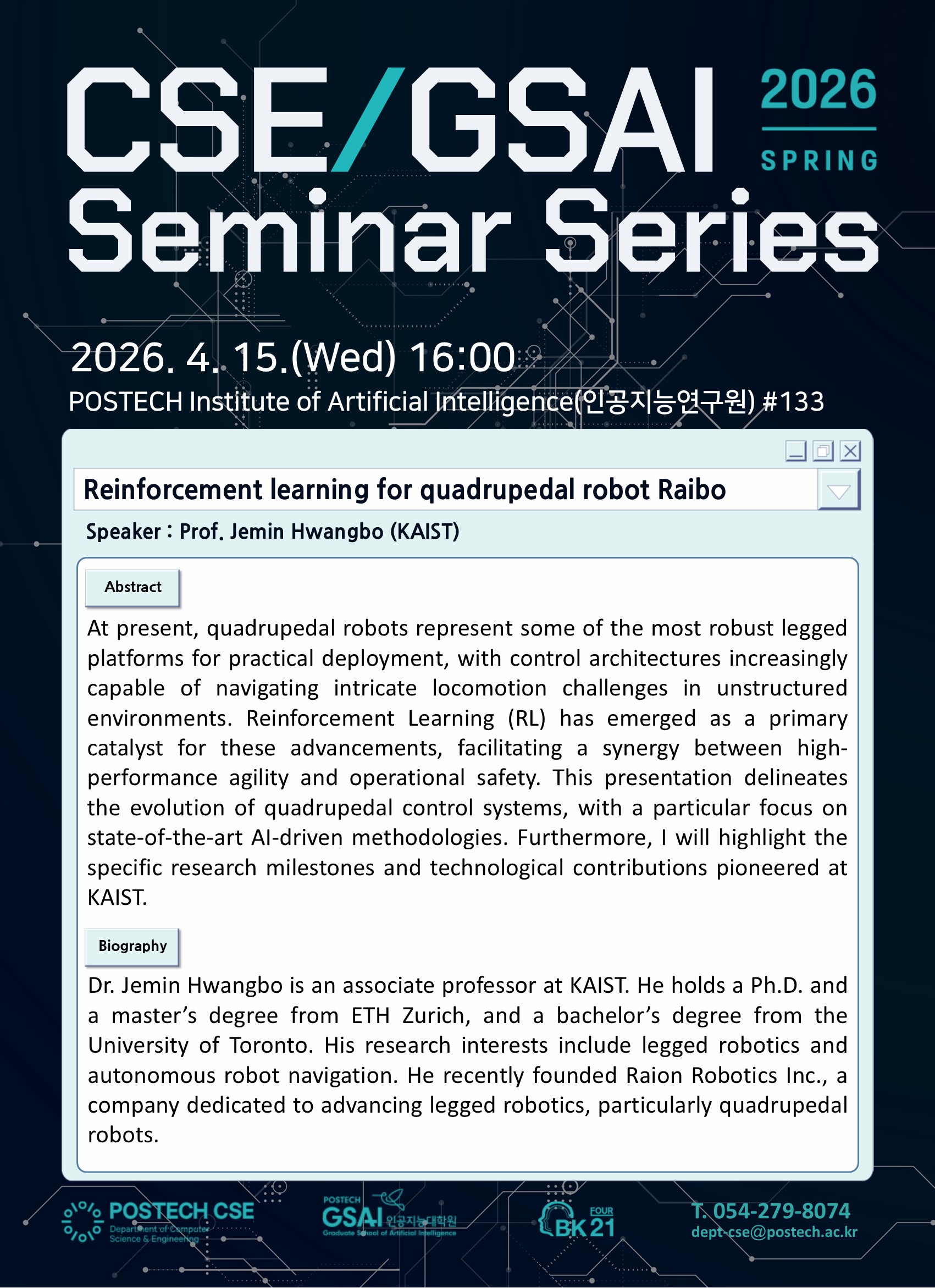 ▣ 장소(Venue) : 인공지능연구원 133호(PIAI #133)