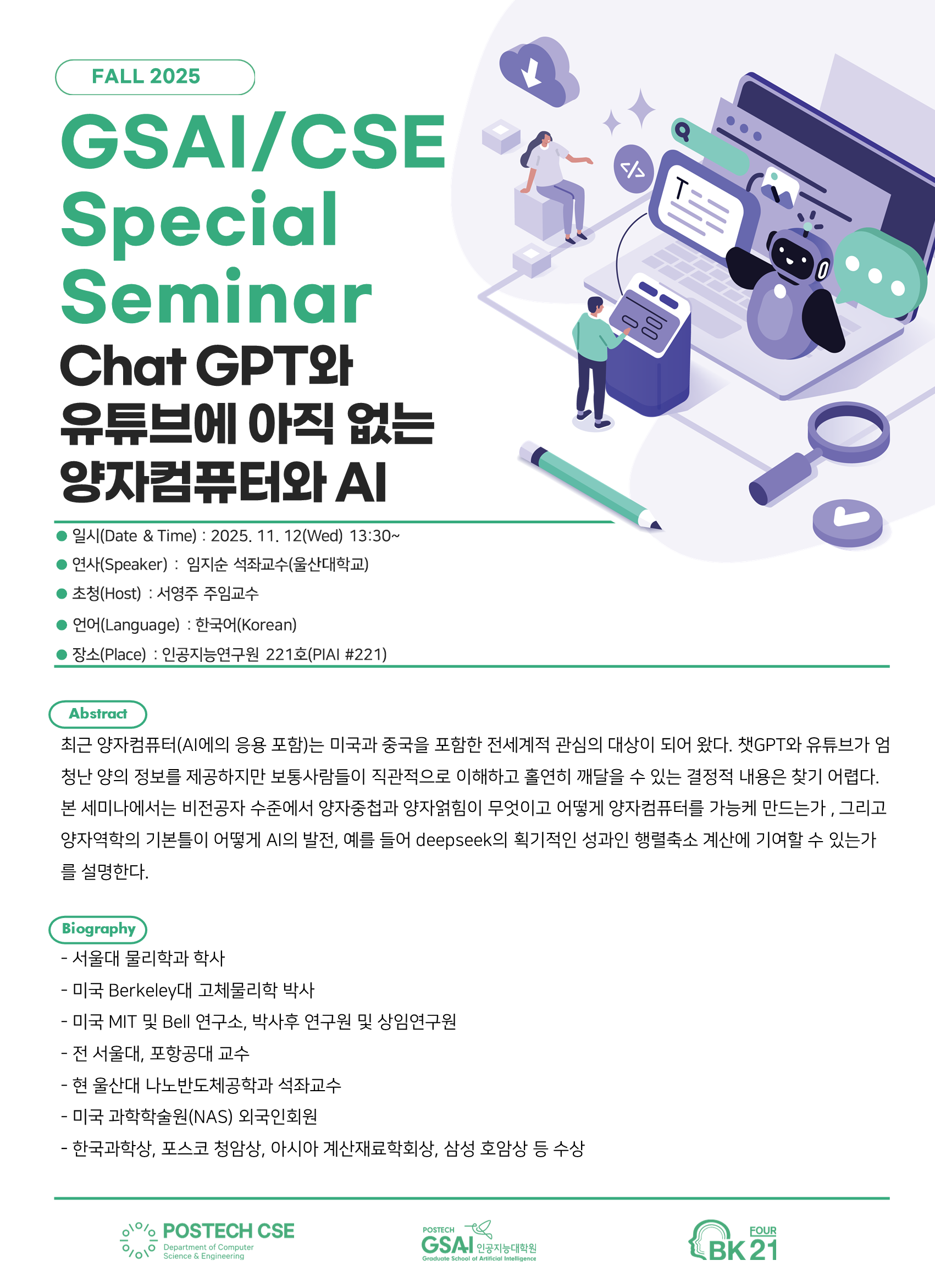 ▣ 장소(Venue) : 인공지능연구원 221호(PIAI #221)
